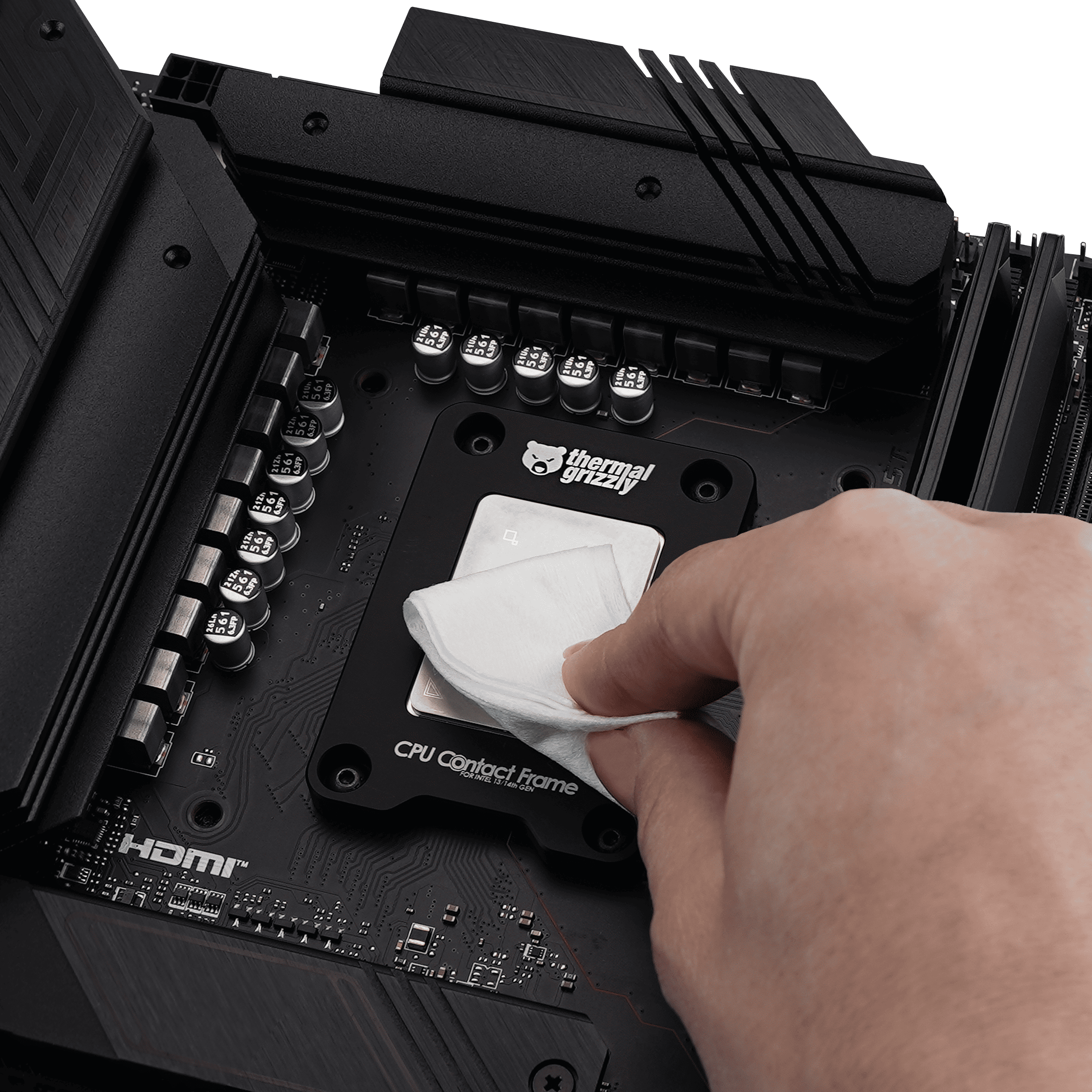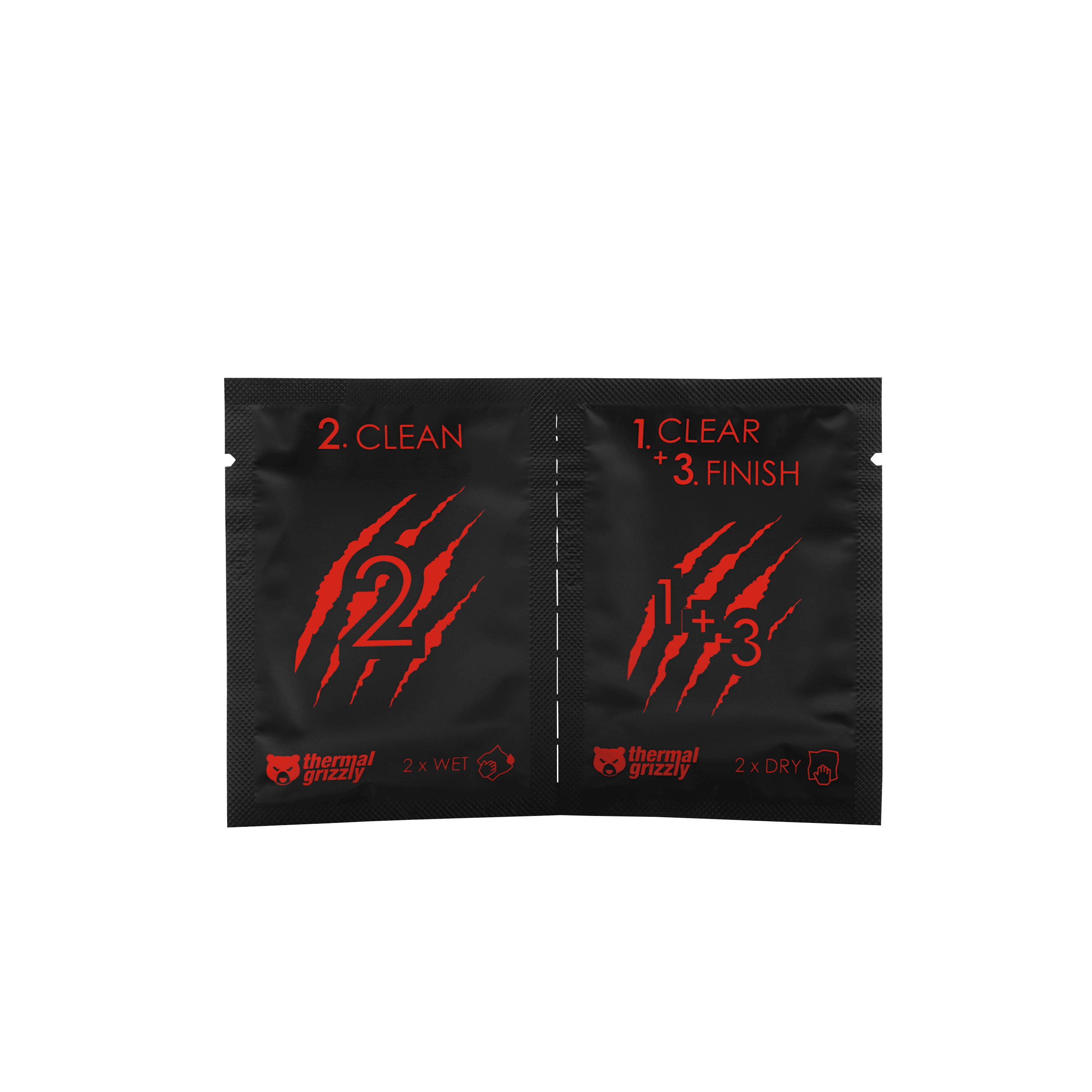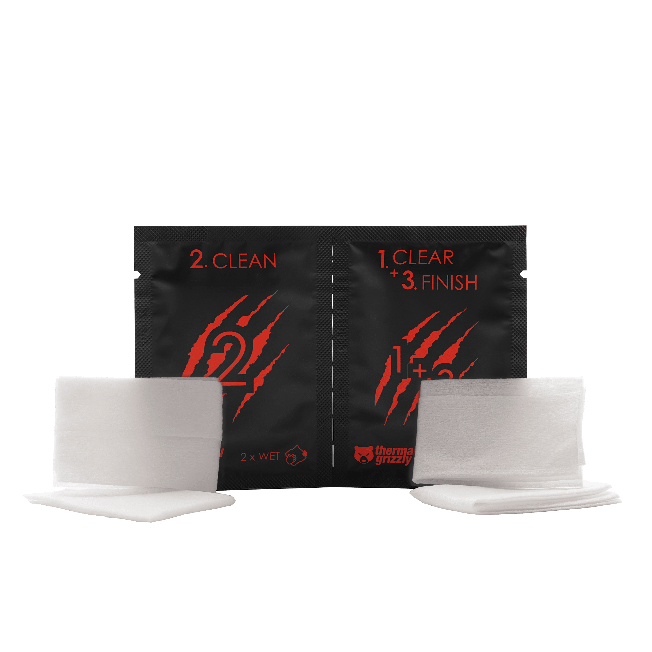 Saubere und entfettete Oberflächen sind wichtig, damit Wärmeleitmittel wie Wärmeleitpasten oder Flüssigmetall gut haften und so ihre volle Wärmeleitfähigkeit entfalten können. Hier kommen die TG Cleaning Wipes ins Spiel: Reinigungstücher zum Säubern von Oberflächen. TG Cleaning Wipes beinhalten zehn Doppelpacks mit je zwei Trocken- und zur Entfernung von Wärmeleitpastenrückständen optimierten Nasstüchern.
