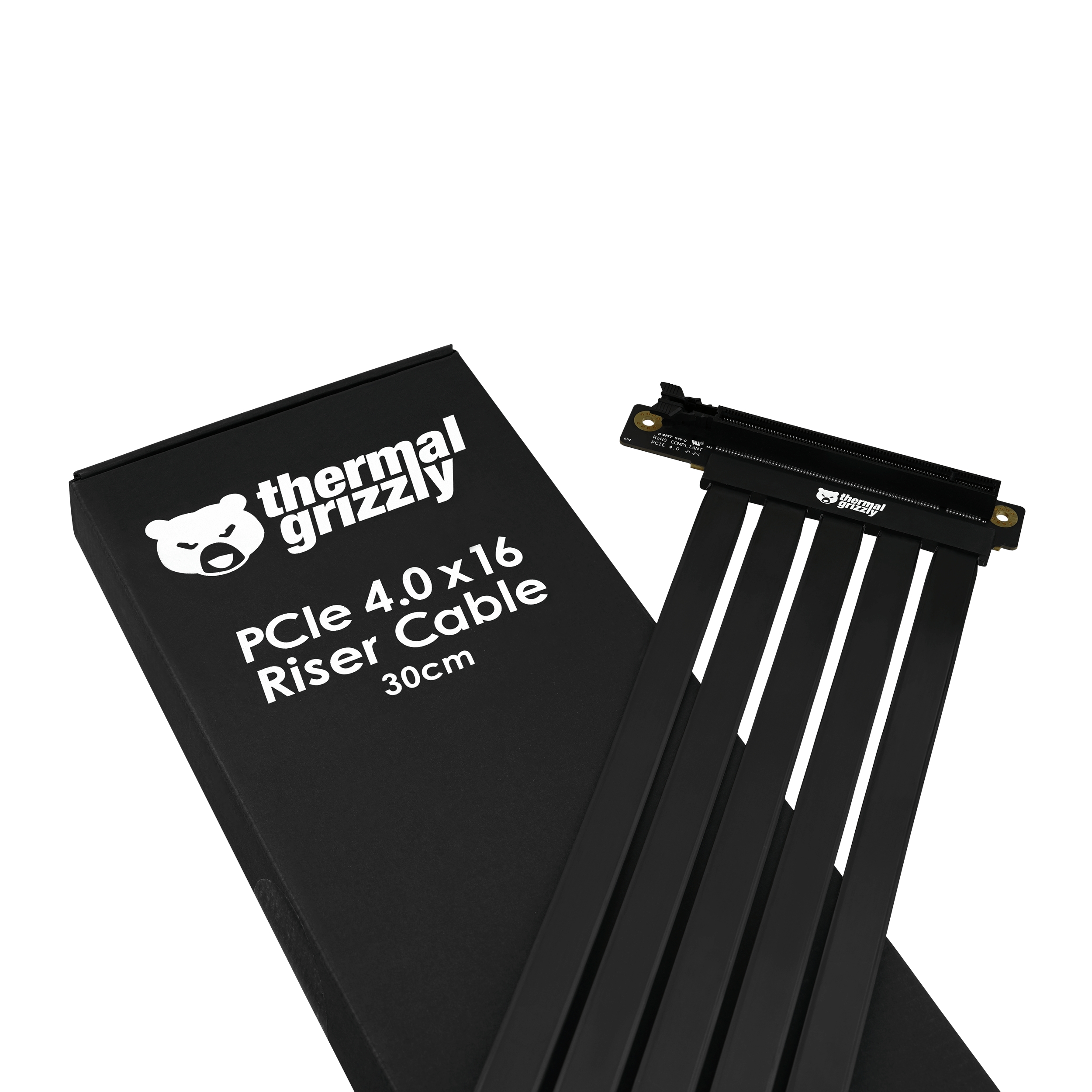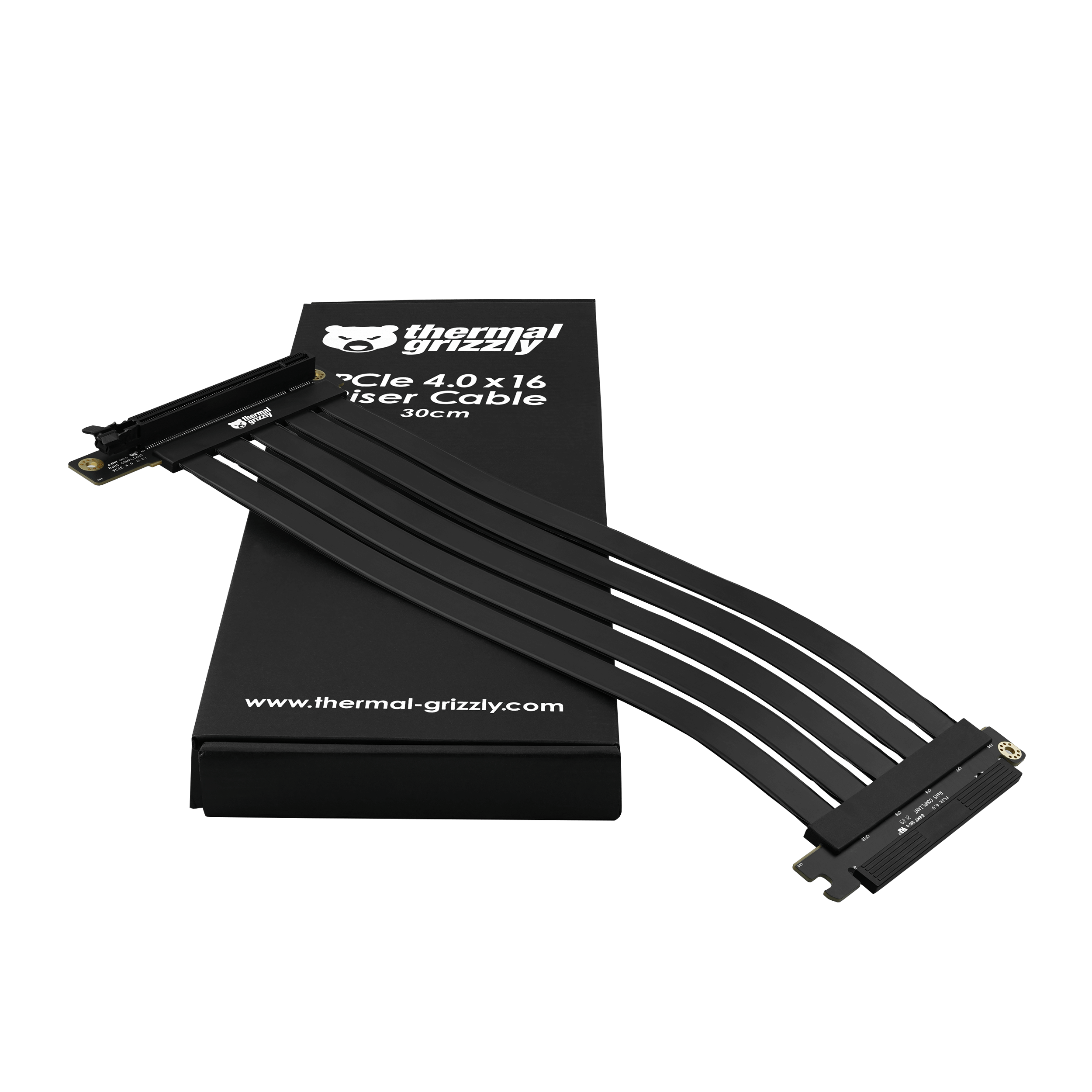 Thermal Grizzly bietet mit dem PCIe 4.0 x16 30cm TG Riser Kabel ein PCI Express-Verlängerungskabel für Erweiterungskarten wie Grafikkarten mit bis zu PCIe 4.0 x16.